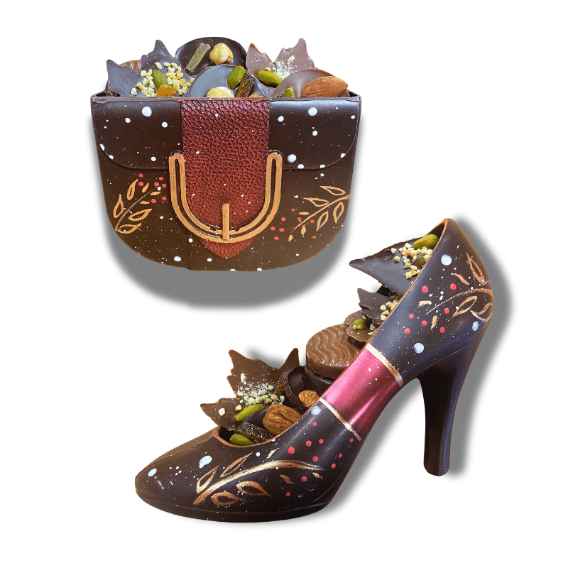 Disponible en Chocolat Noir ou lait garni de gourmandises chocolatées