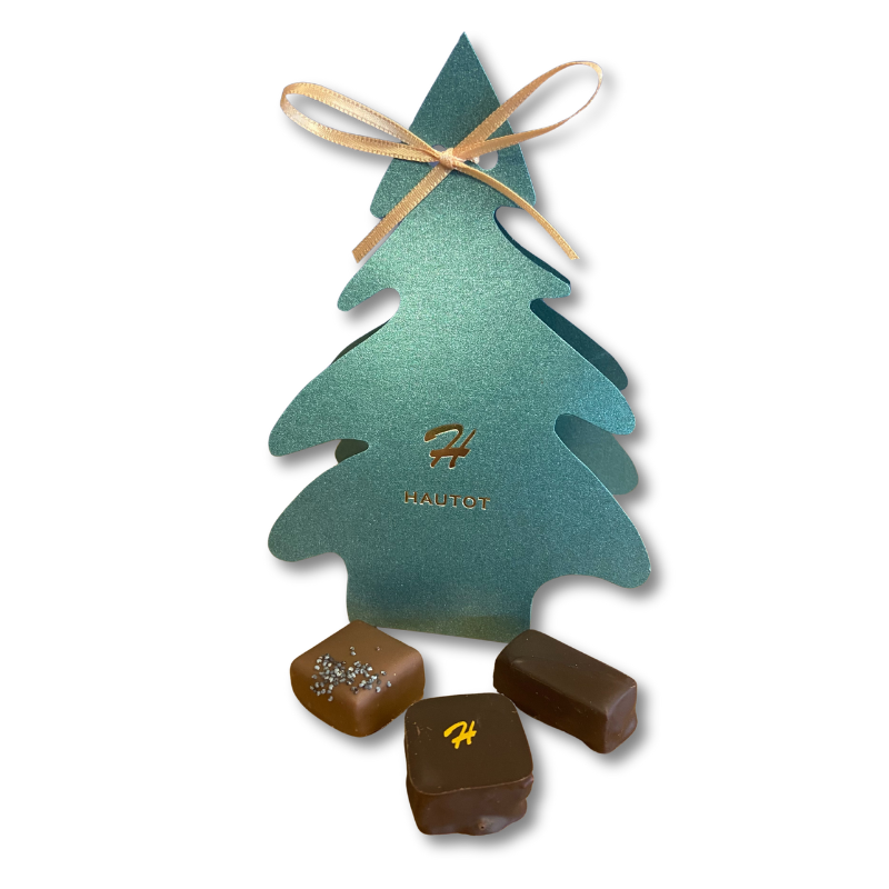 Mini sujets de Noël à dévorer en famille. Assortiment de chocolat noir, lait et blanc.