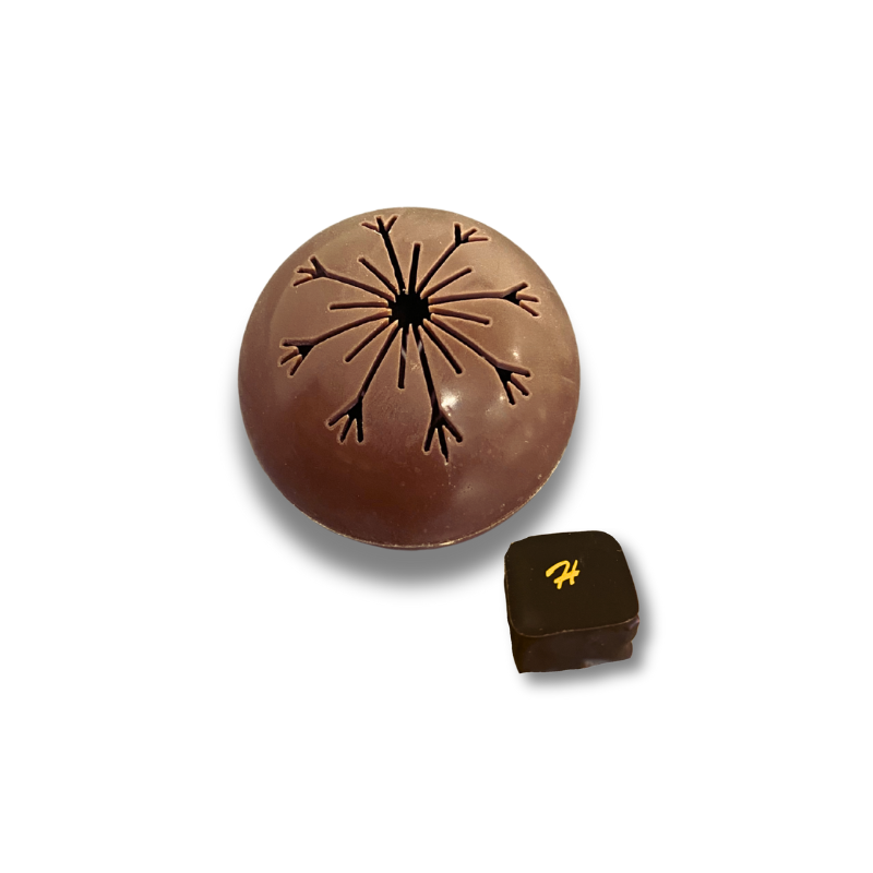 Bouchées pralinés et ganaches aux grands crus de cacao.