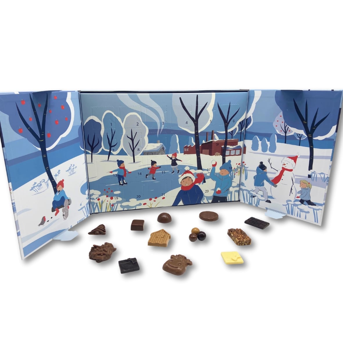 Ingrédients: Chocolat au LAIT (cacao:30% minimum)/ Chocolat noir (cacao: 70% minimum)/ Chocolat blanc / Chocolat blanc caramélisé : cacao, fèves de cacao, sucres, beurre de cacao, poudre de LAIT entier, poudre de LAIT écrémé, pâte de cacao, LACTOSERUM, LAIT concentré sucré. AMANDES, NOISETTES, beurre concentré (LAIT), farine de BLE, OEUFS, riz soufflé, miel et extrait de malte d’ORGE, raisins secs, eau, sel, acide citrique, huile végétale non hydrogène, E500ii (bicarbonate de sodium), gélatine, fécule de pomme de terre, extrait naturel de vanille, lécithine de SOJA, lécithine et huile de tournesol, arôme vanilline, carbonate ammonium, sodium, huile de colza, huile de NOISETTES, amidon de blé, maltodextrine, gomme shellac .